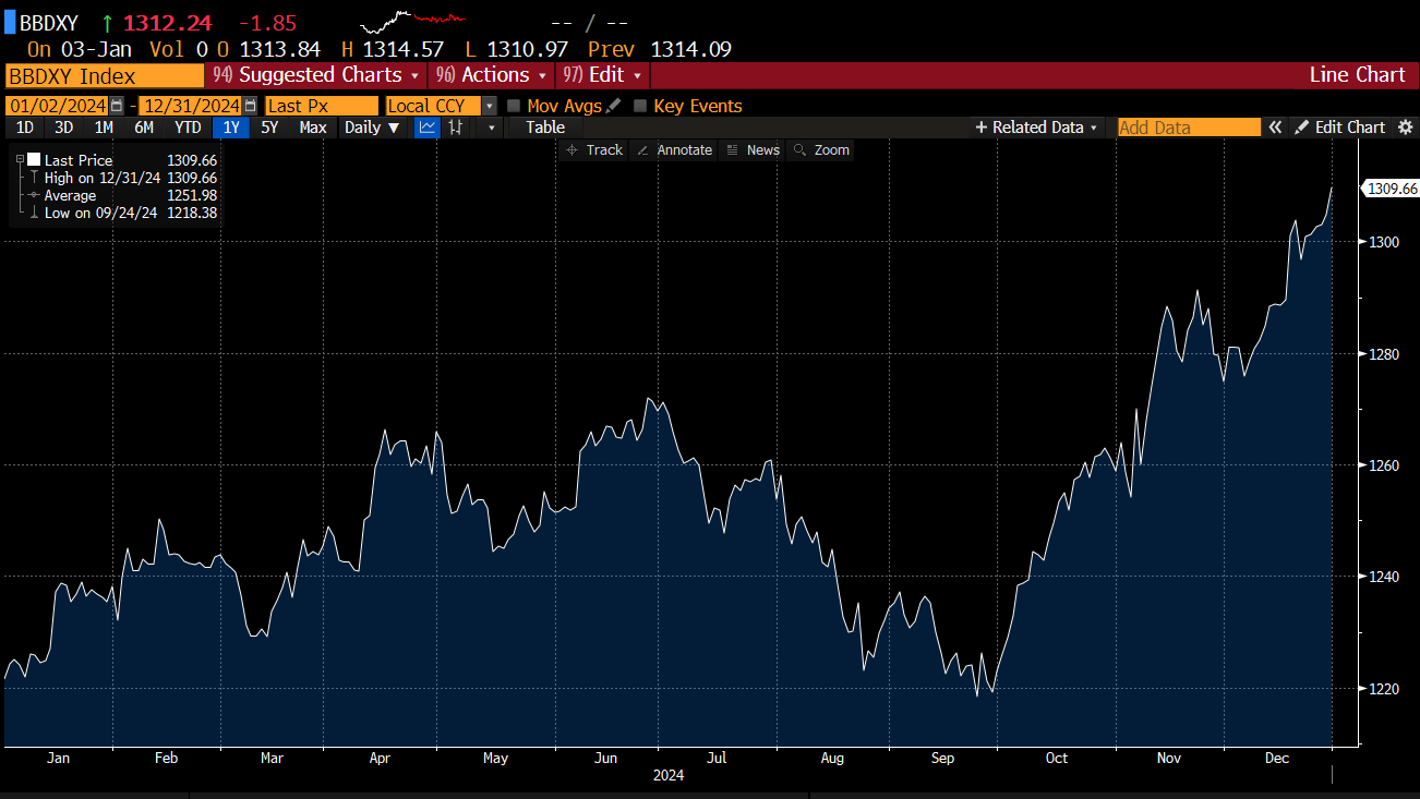 (Bloomberg Dollar Spot Index swung downward 1st half of year, regained in H2)