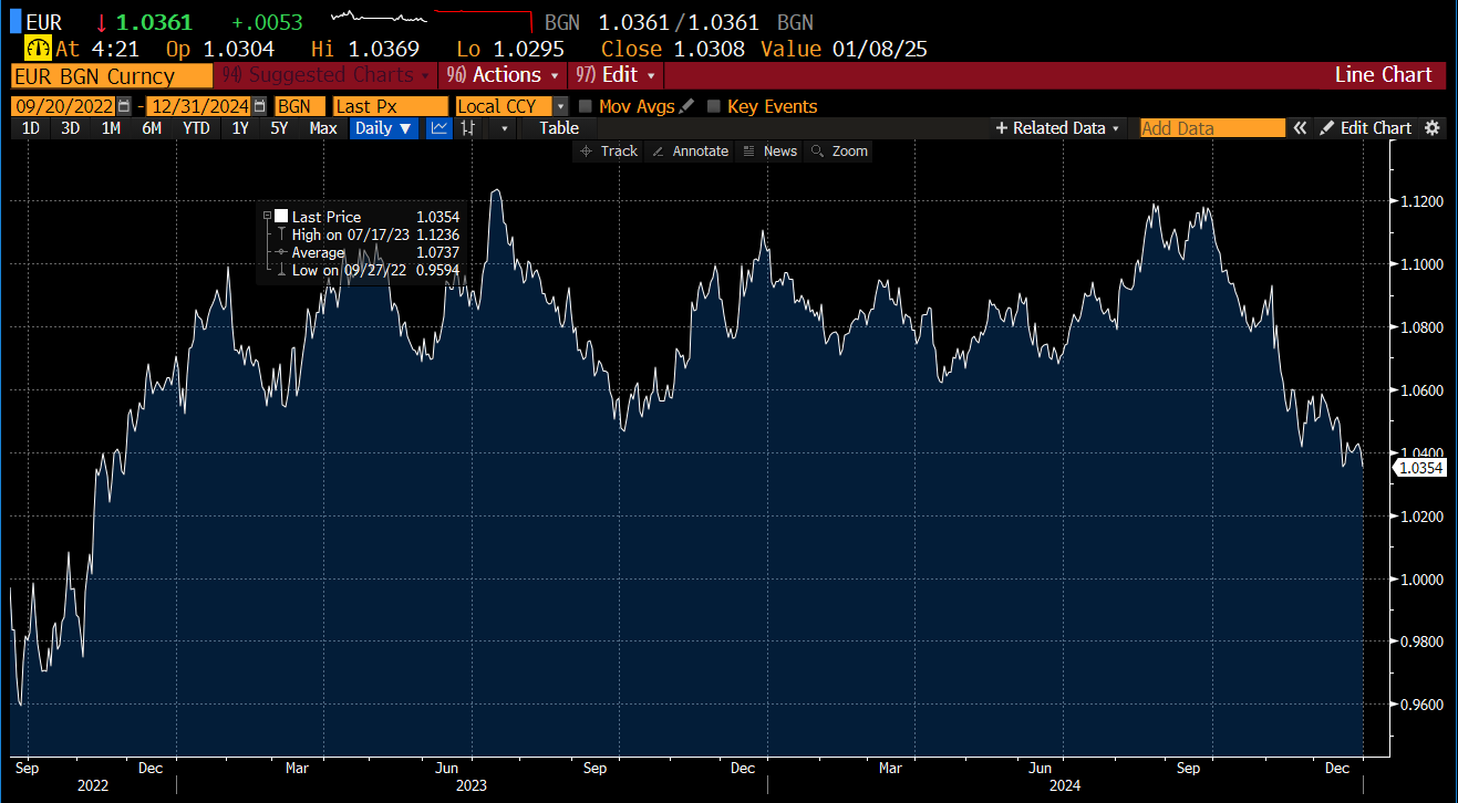 (Bloomberg graph shows how the Euro climbed by 13.0%, reaching its highest level since Sept. 2021)