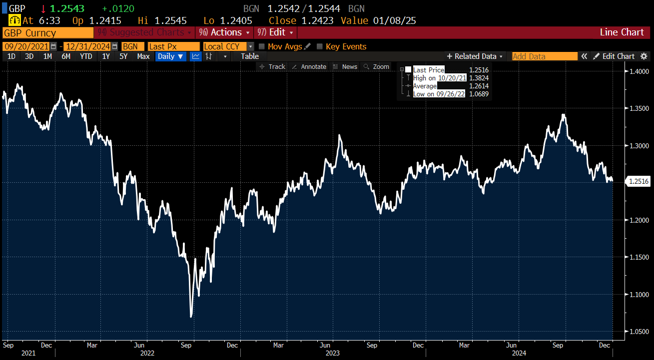 (Bloomberg graph for 2024-2025 Pound movements, highlighting dramatic change)