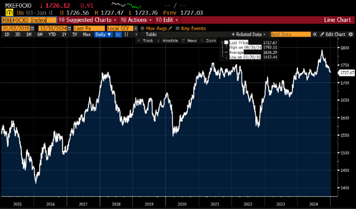 FX moves in recent weeks have been mostly quiet and no clear direction can be assigned to the Dollar. In November, its overall decline was barely three tenths of one percent with a tougher December around 1.0% drop. It is worth paying attention to the positive trend in Emerging-Market currencies and LATAM, which have improved as a result of world adjustments to new costs for commercial trading and the growing importance of raw materials as well as natural sources of energy.