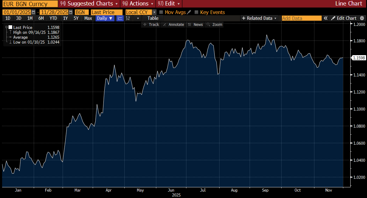 (Bloomberg chart shows the Euro’s successful run throughout the first three quarters of the year)