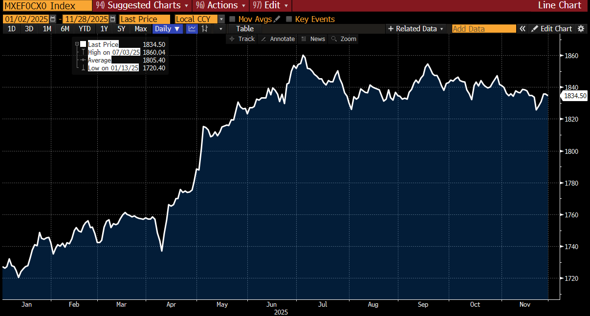 The next day, it will be followed by the crucial BOJ decision announcement. Emerging-Markets and LATAM FX flows will surely be significant after some reversals in tariffs from the U.S. On November 14, the White House reversed tariffs to coffee, exotic fruits, concentrated juices, and other food items in an attempt to bring down prices of groceries for American consumers. All this and possibly a ceasefire between Russia and Ukraine will make for plenty to chew on as 2025 reaches the finish line.